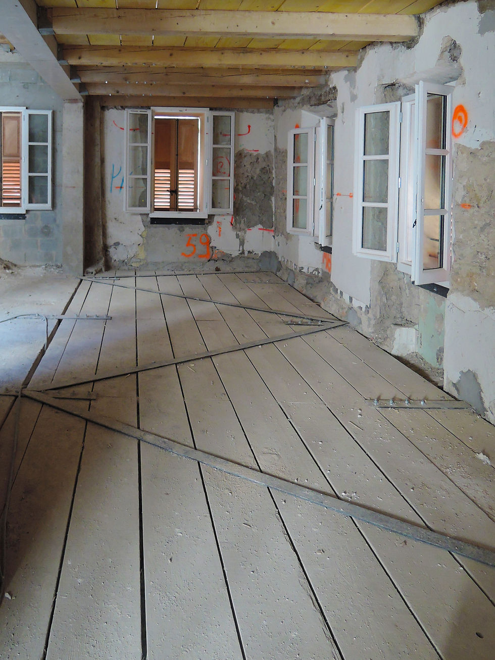 Le projet a consisté à curer le centre de l’îlot formé par les quatre immeubles afin de dégager une prise de lumière intérieure et de permettre des ouvertures sur cet espace commun. le cahier des charges prévoyait une réhabilitation en conservation et en utilisant les techniques traditionnelles des immeubles du centre historique de Grasse : planchers bois, fenêtres bois à petits bois conservées en lieu et place, volets mi-persiennés.